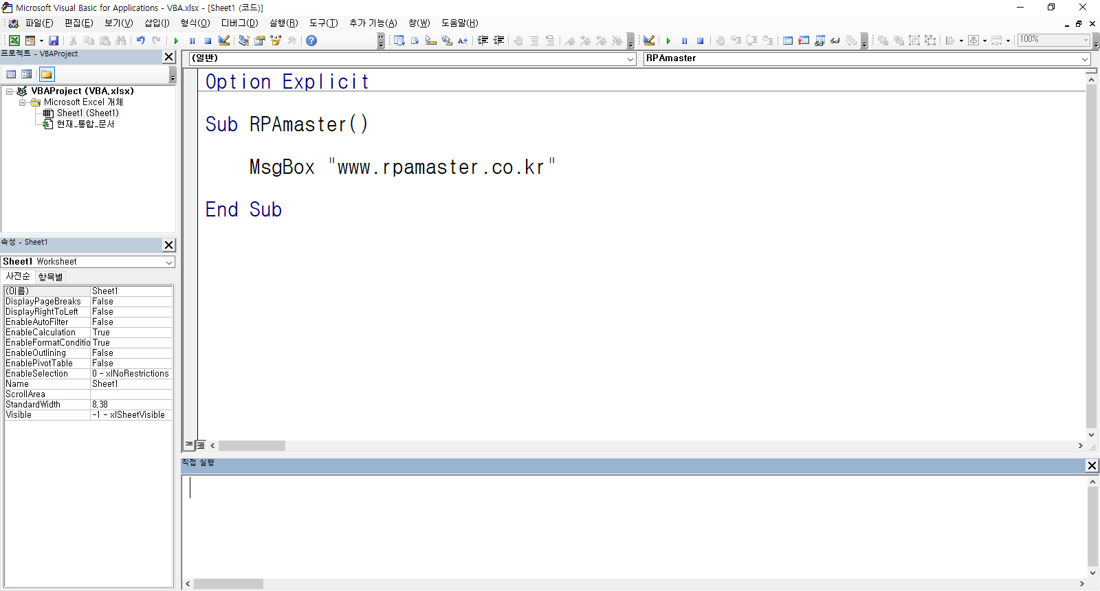 VBA창과 Excel Application 창을 상호 전환할 수 있다.